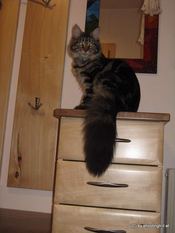 Die Vernunft hat nun doch gesiegt. Finia (KLICK- öffnet Galerie in neuem Fenster) das schwerste Mädel aus dem F-Wurf. Deshalb kam bei mir der Wunsch auf, sie für die Zucht bei mir zu behalten, sie stammt aus einer 1xVerpaarung Elva x Tyrols Amor. Und sie hat mit 10 Monaten über 5 kg, tolles Aussehen und noch tolleres Schmusewesen.